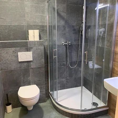 Τα απαραίτητα για το μπάνιο περιλαμβάνουν ξεχωριστή τουαλέτα και ντους, καθώς και στεγνωτήρας μαλλιών και μεγάλες πετσέτες μπάνιου.